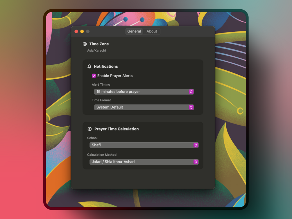 - Menu Bar Convenience: Effortlessly view the upcoming prayer and its countdown directly on your menu bar.